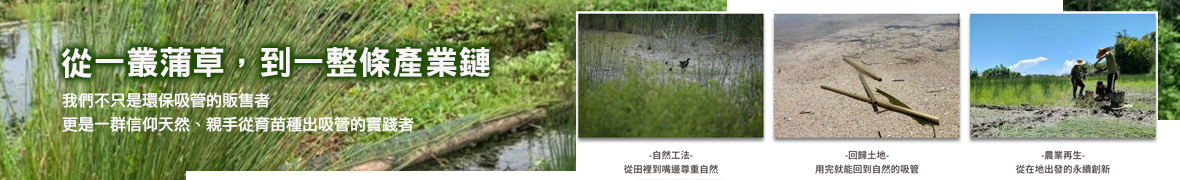 從在植物園找到最後一叢蒲草,到經歷多年的培苗育種與無數次種植失敗,最終成功建立蒲草田與蒲草吸管工廠,這段旅程不僅僅是打造環保餐具,更是我們對永續環境的堅定承諾。