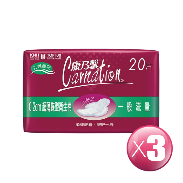 康乃馨-超薄蝶型衛生棉(一般型) (21.5CMx20片x3包)