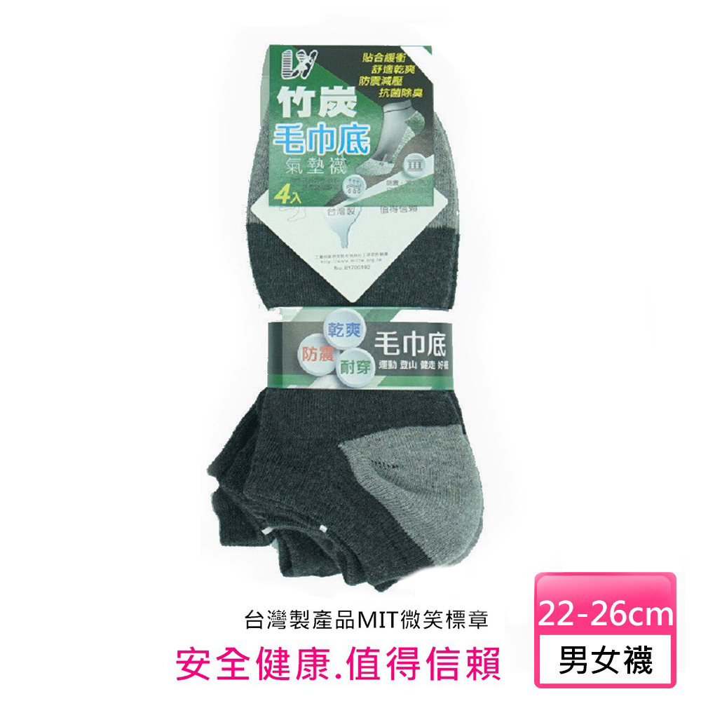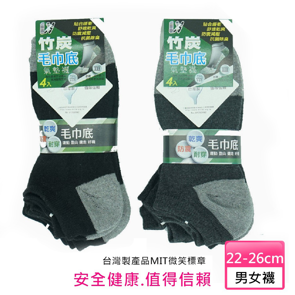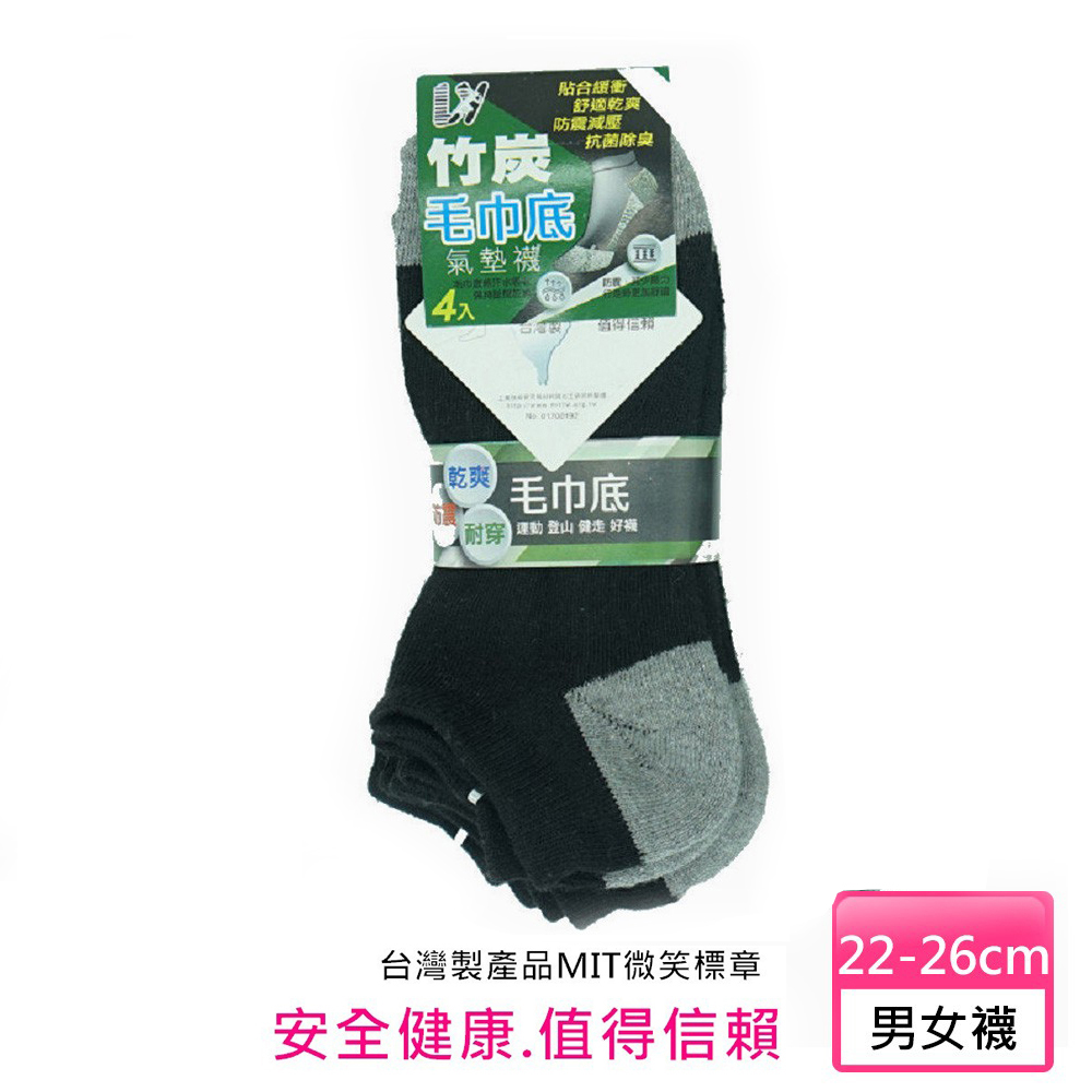 慶峯-竹炭紗毛巾底船形運動襪 (1組4雙)