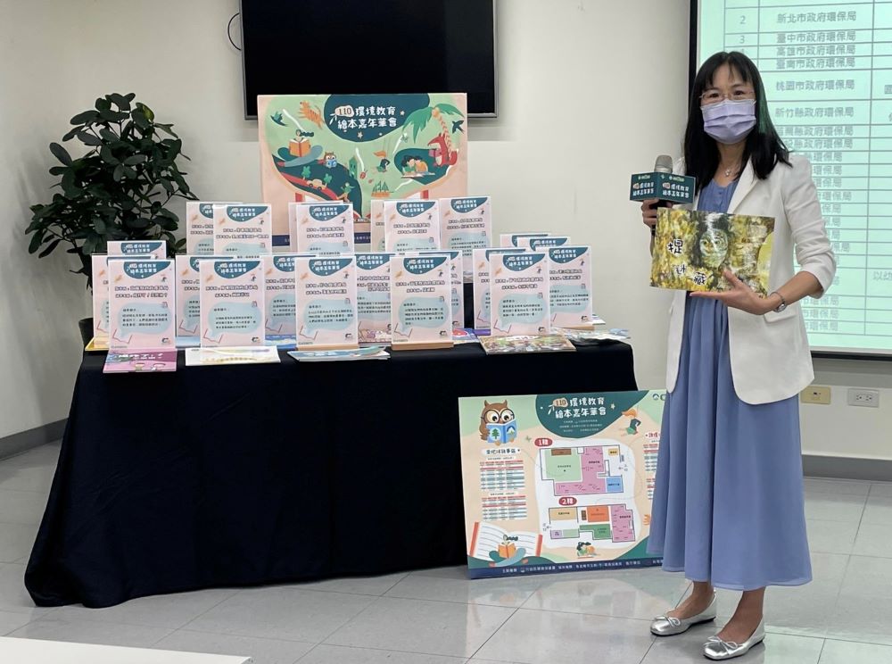 徐淑芷副處長(中)展示全臺22縣市的優良環境教育繪本