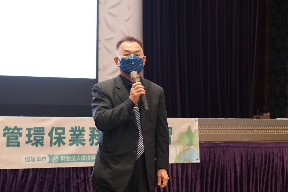 表面處理工業同業公會徐東鎮理事長表示,非常感謝環保署舉辦本次研習活動,讓業界了解到目前淨零排放國際趨勢及最新環保法規內容。會中由環保署水質保護處、廢棄物管理處、管制考核及糾紛處理處及氣候變遷辦公室針對金表電鍍業相關的環保法規趨勢及未來淨零策略進行說明,也特別邀請臺中市環保局陳宏益局長及輔英科技大學賴進興教授進行專題演講。