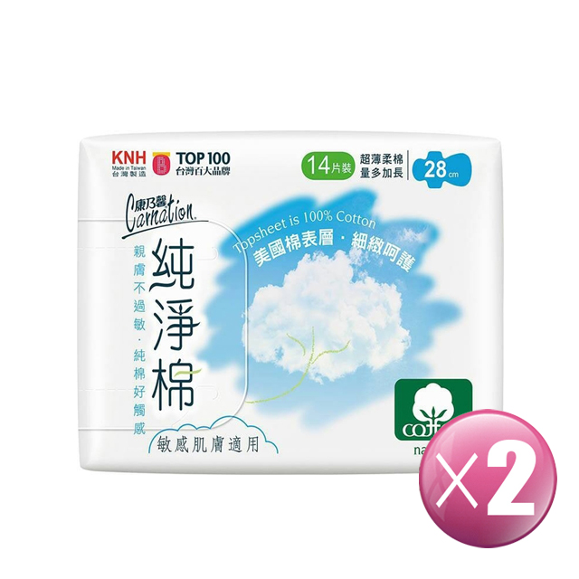 康乃馨-純淨棉衛生棉(量多加長) 28cmx14片x2包